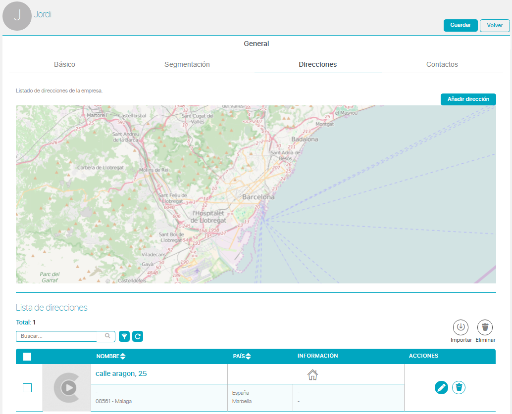 podremos ir añadiendo las diferentes direcciones de la empresa.